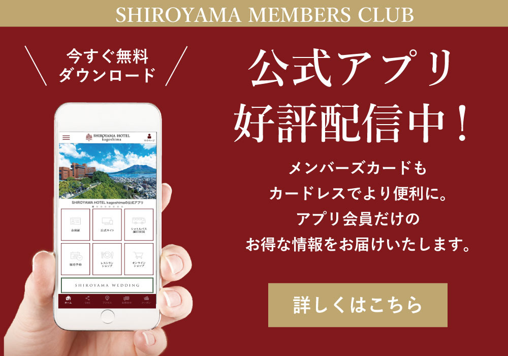 SHIROYAMA MEMBERS CLUBは、SHIROYAMA HOTEL kagoshimaでご利用いただける会員プログラムです。会員の皆様には、ポイントをためる楽しみ、つかう楽しみ、そして、ホテルで過ごすひとときを更にグレードアップする特典をはじめ、多彩なご優待をお届けします。
