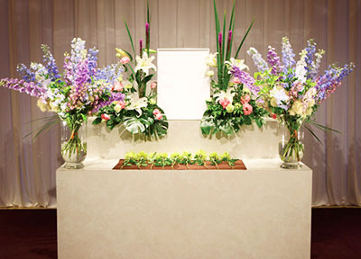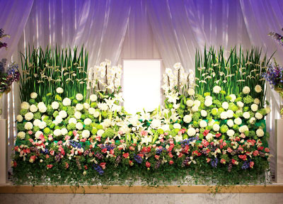 故人を偲ぶ献花や祭壇、ご遺影を飾るさまざまな葬花・装飾。