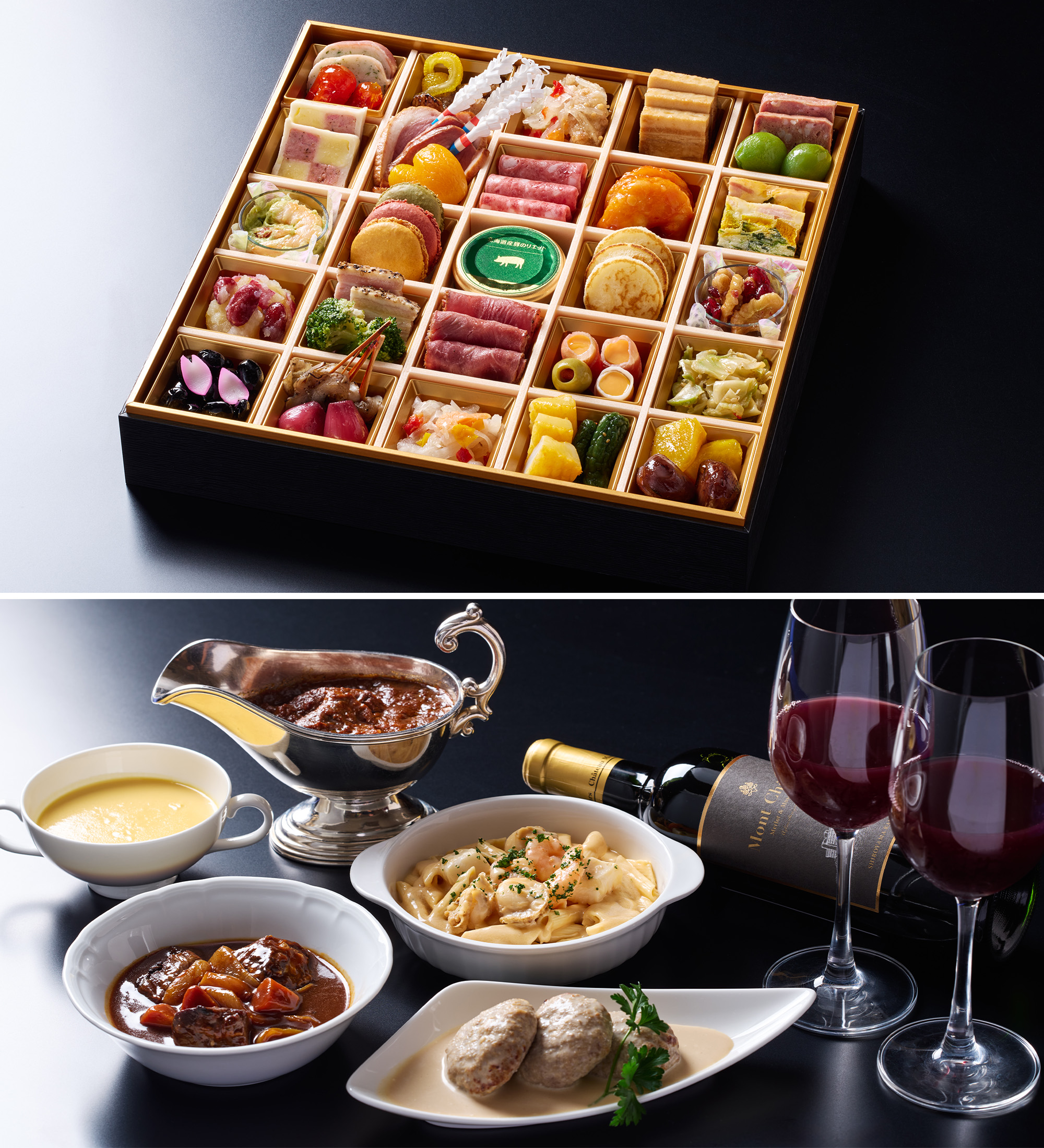 お正月の食卓を華やかに彩る、ビストロおせちと心温まるホテル洋食のマリアージュで仕立てました。