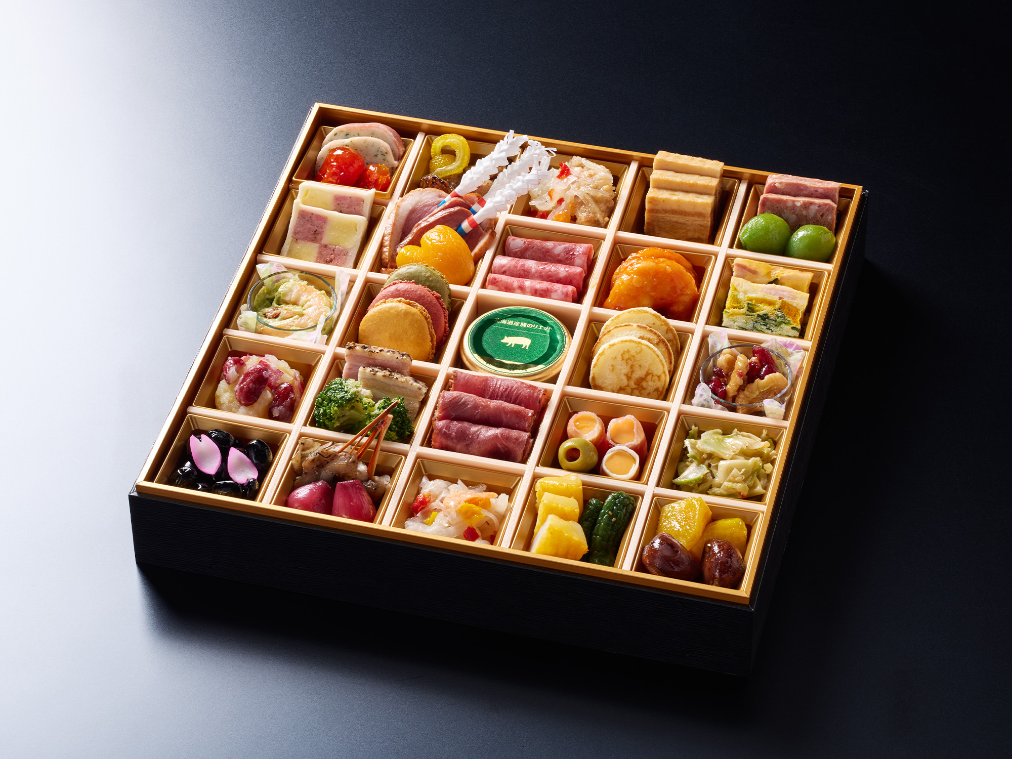 ※諸事情により献立の内容や重箱の材質・外寸サイズが多少変更になる場合がございます。予めご了承ください。