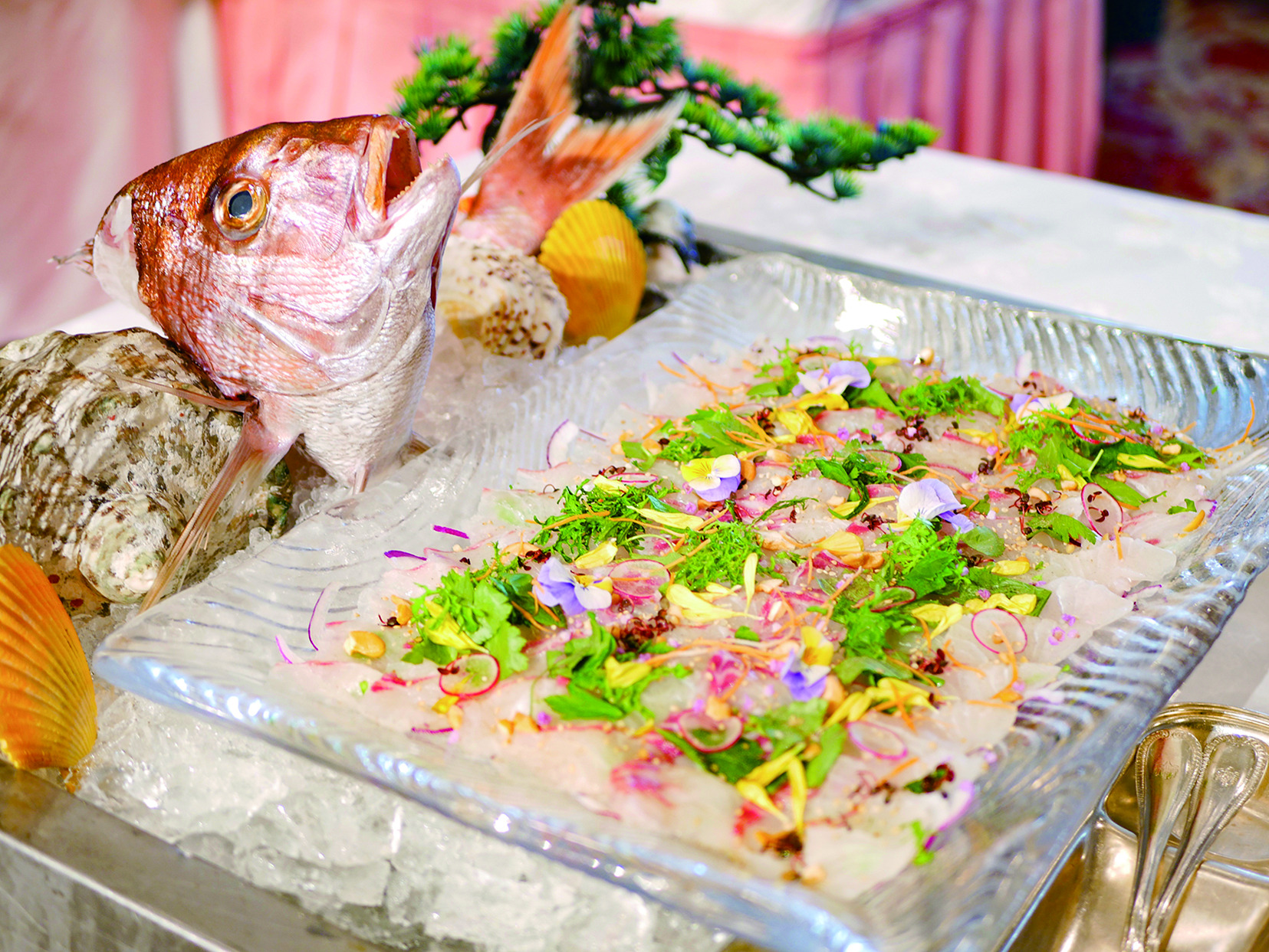 お寿司や天ぷら、ステーキなど、ホテルの料理人が実演するコーナー料理も。