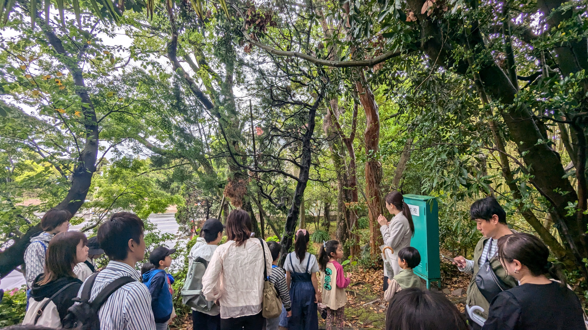 その後は巣箱の見学会へ。あいにくの雨でみつばちの姿は少なめでしたが、初めて間近で見る巣箱にみんな興味津々。