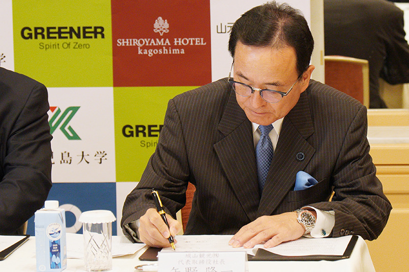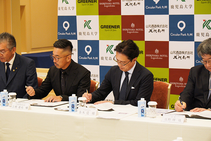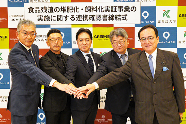 11月6日、食品残渣の堆肥化・飼料化実証事業の実施に関する連携確認締結式が当ホテルで開催され、実証実験がスタートしました。連携する5社で協力して、ホテルで出る生ごみを堆肥化・飼料化する実証実験をし、この結果を地域資源を循環するモデルケースとして、九州全域への展開することを目指しています。