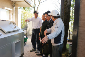 締結式の後、ガーデンレストランホルト裏に設置された、高温発酵乾燥処理機械を見学しました。
