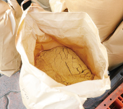 ①処理機械へ投入する発酵促進剤(焼酎粕)の提供