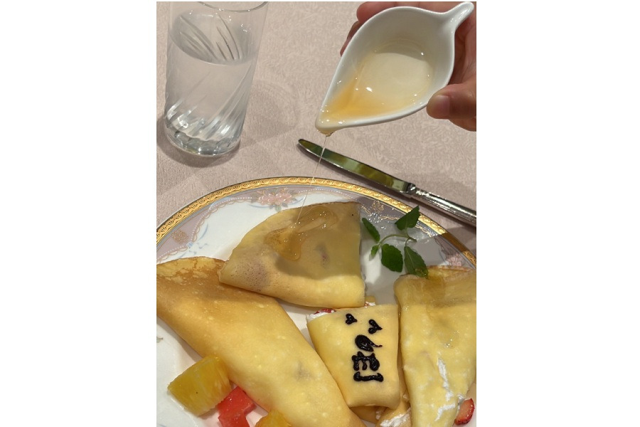 いよいよ、採蜜した蜂蜜をクレープにかけていきます!