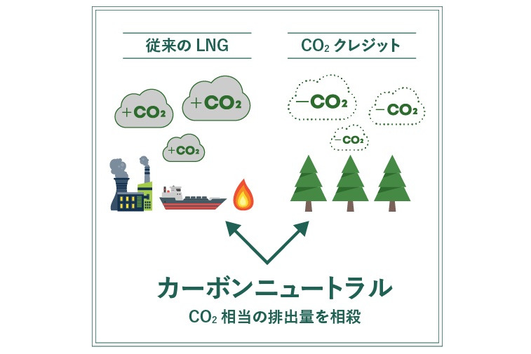 これをゼロにするのは現実的に不可能なため、別の場所での取り組み、例えば新興国にお ける森林保護活動などで創出された CO₂クレジットで相殺する仕組みを活用した都市ガスです。