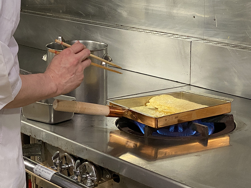 ホテルで人気の朝食メニュー 鰹だし汁出汁巻卵や豚軟骨味噌煮、スクランブルエッグなどを作る過程でも、カーボンニュートラル都市ガスを使用しております。
