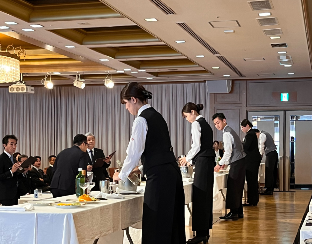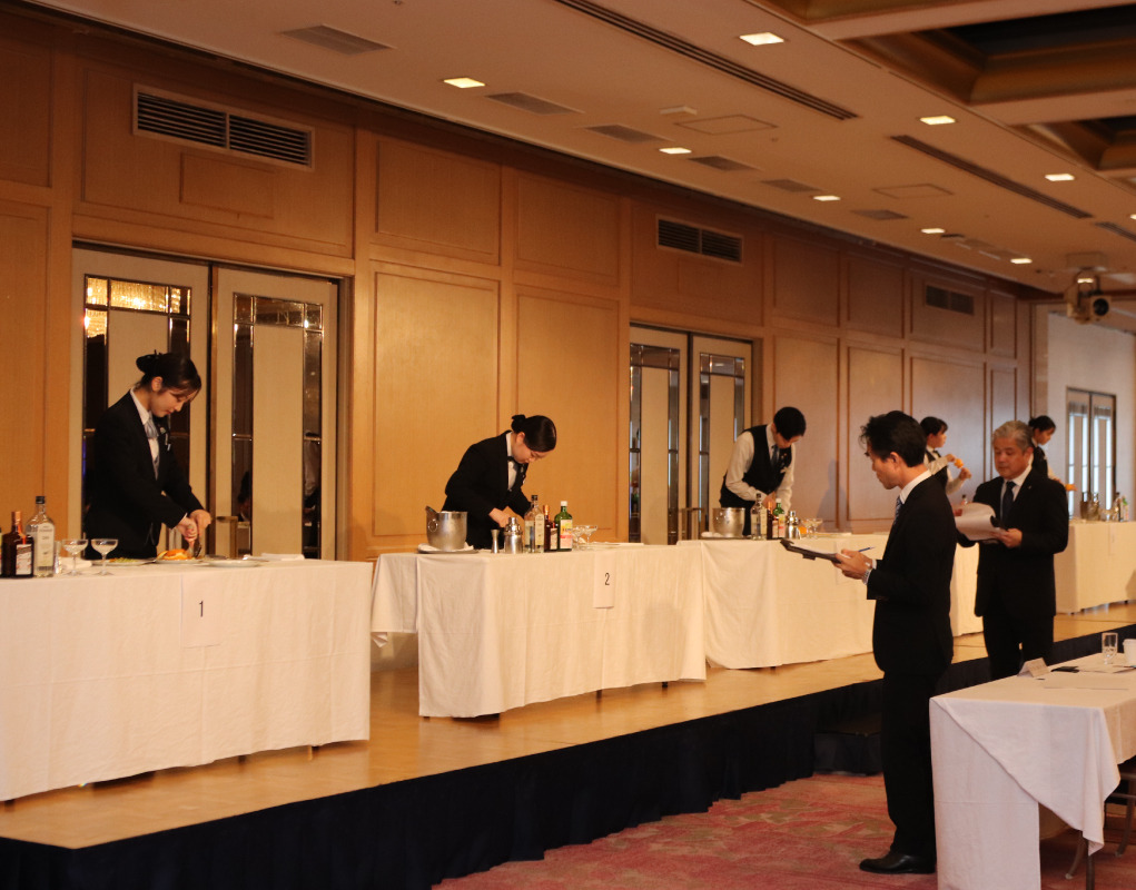 今回は宴会サービス、和・洋・中各レストランスタッフから希望者を募り、24名の選手が日頃の業務で培った能力を発揮し、技術・サービス力を競いました。