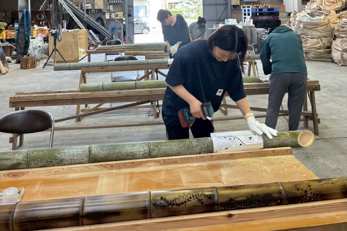 今回の竹灯籠の一部は、ホテルスタッフが出水市で製作体験をさせていただき、手作りしました!