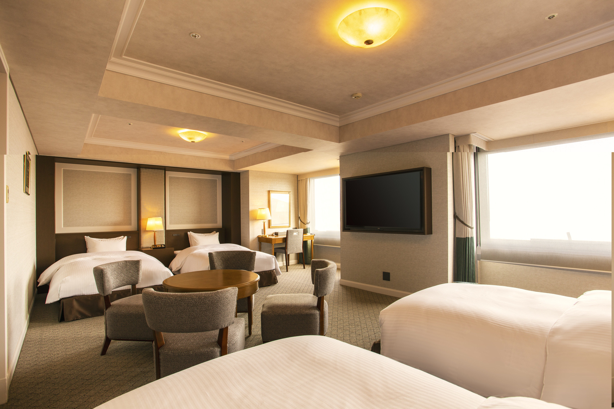 観光もグルメも楽しんだらいよいよホテルにチェックイン!家族での宿泊におすすめの客室は「桜島ビューフォース」。4台のベッドに、客室にはテレビや洗面台が2箇所に配置されているので朝の身支度も快適です!桜島の景色を眺めながら家族水入らずの時間をお過ごしください。