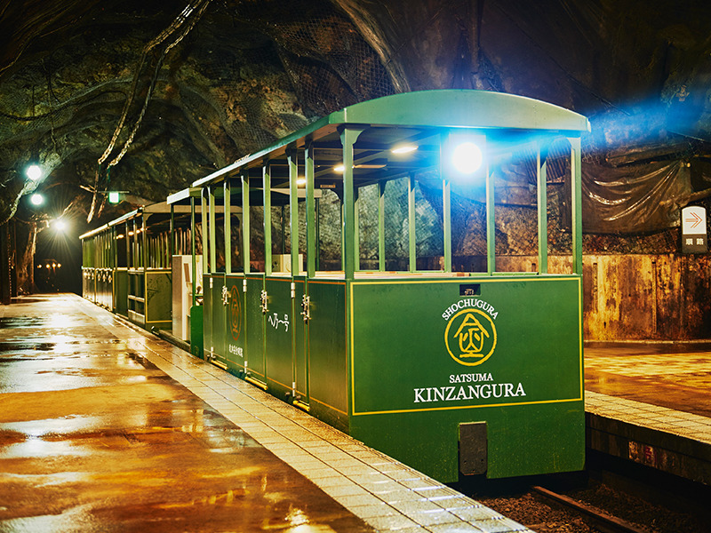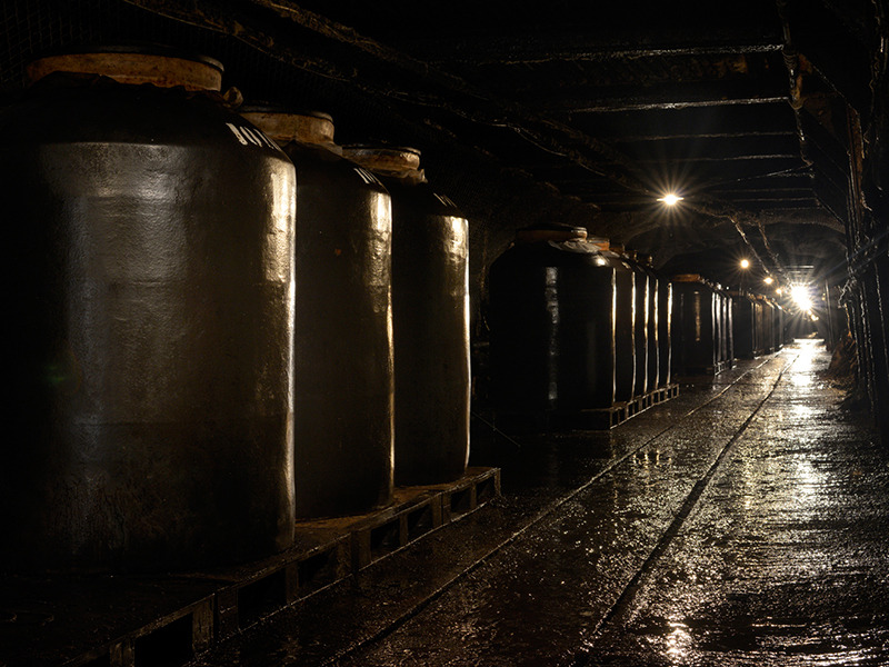 薩摩藩の栄華を支えた串木野金山の坑洞跡を利用した、世界でも類を見ない焼酎蔵。 専用のトロッコ列車に乗って、坑洞内に構えた甕仕込み・甕貯蔵の蔵を見学することができます。仕込み蔵では「カブト釜式蒸留器」「どんぶり仕込み」での焼酎造りが行われています。