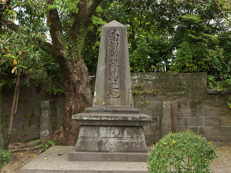 明治10(1877)年9月24日未明、城山を包囲した政府軍が一斉に砲撃を開始。腰と太ももに銃弾を受けた西郷隆盛は、この地で別府晋介の介錯によって最後を遂げたと言われています。