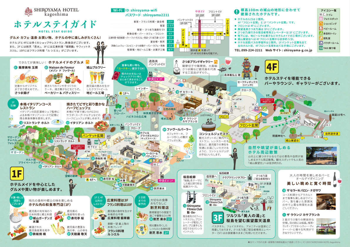 標高108mの城山に立つSHIROYAMA HOTEL kagoshimaの自慢は桜島、市街地を見渡す眺望です。