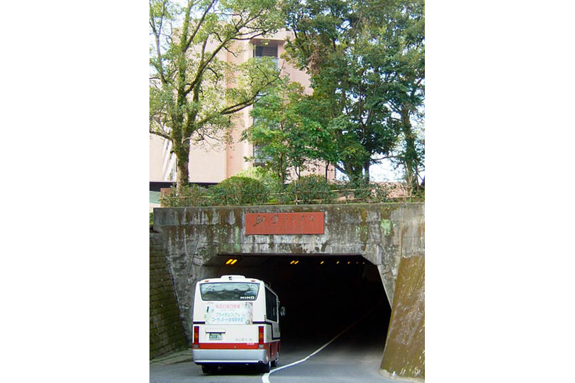SHIROYAMA HOTEL kagoshima新館を建設した1973(昭和48)年に、当ホテル創業者 保 直次が将来の車社会を見越して、この台地を東西に貫く城山縦貫道をつくり、このトンネルで結びました。