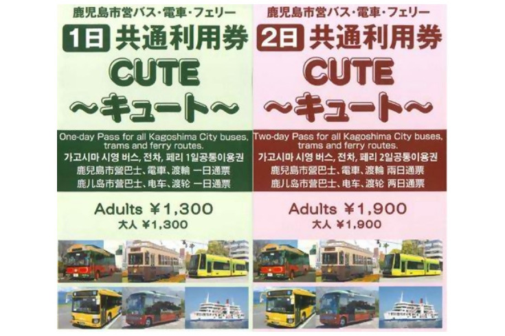市営バス(カゴシマシティビューやサクラジマアイランドビューを含む)、市電、桜島フェリーまで全て一枚の券で利用できる共通利用券が「CUTE(キュート)」です。