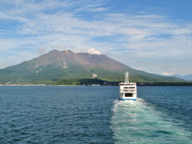桜島フェリーは日中は20分間隔で行き来する便利な交通手段です。所要時間 15分という短い時間ながらクルージング気分が味わえますよ。