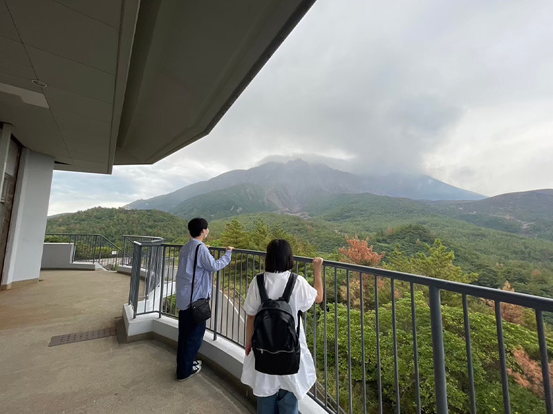 桜島の展望所の中で最も高い所にあり、仰ぎ見る南岳の荒々しい山肌や噴煙を上げるさまは圧巻!眼下には錦江湾と鹿児島市街地が広がり、遠く霧島連山、開聞岳まで一望できます。