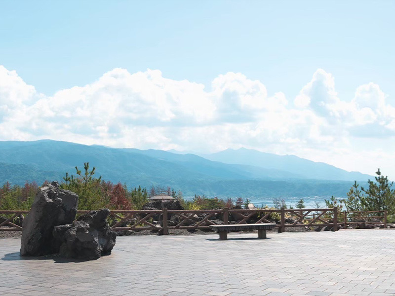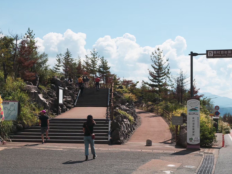 1946年の大爆発で流出した溶岩原の小高い丘にある展望所。全長1㎞に及ぶ溶岩遊歩道の途中にあります。ここから眺める桜島は、大正溶岩と昭和溶岩を同時に見ることができ一味違う桜島を感じることができます。