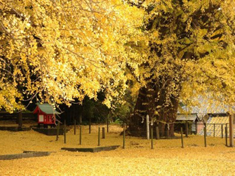 樹齢1,000年以上といわれているこの2本のイチョウは県文化財に指定されており、春先には樹幹に若葉を付け、 秋は黄葉、初冬になると境内が黄色のじゅうたんを敷きつめたようになり、風情があります。