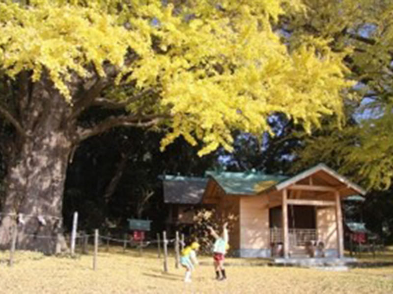 「宮浦宮」 ”夫婦大銀杏”の樹齢は神武天皇が奈良に遷都される際、福山に立ち寄られて記念樹としてお手植えされたもので、現在立っている木は二代目です。その樹齢は1000年ともいわれており、夫婦のように仲良く立ち並んでいるのが名前の由来です。西南戦争時の砲弾を受けてもなお、生命力は強く、その砲弾痕を包み込むように樹木が成長しています。ぜひご覧いただきたい場所です。