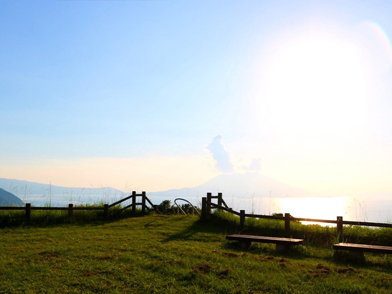 11月下旬から1月中旬にかけて、沈む太陽が桜島の山頂に重なるため、ダイヤモンドのように輝く、約3分間の天体ショーを楽しめます。特に見頃なのは、夕日が稜線の中央付近に沈む12月中旬から下旬にかけてです。 また、日没後に訪れる「マジックアワー」の時間帯も、鮮やかな夕焼け空に桜島のシルエットが映え、幻想的な雰囲気に包まれます。夕日の絶景ポイントとしてぜひお越しください。