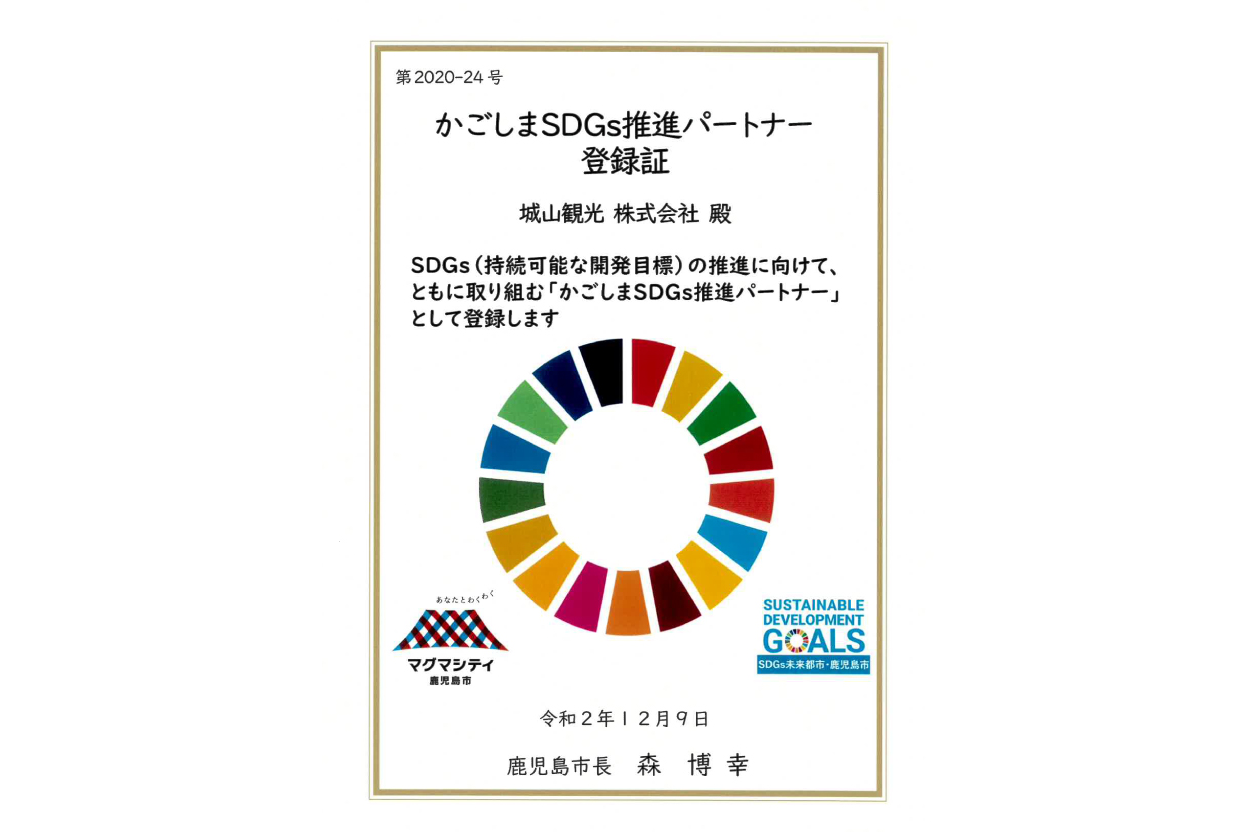 SHIROYAMA HOTEL kagoshimaは2020年12月9日に、『かごしまSDGs推進パートナー』に登録されました。