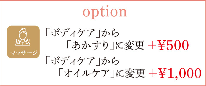 ボディケアは、落ちついた雰囲気の中で、心もカラダもリラックスへと導きます。