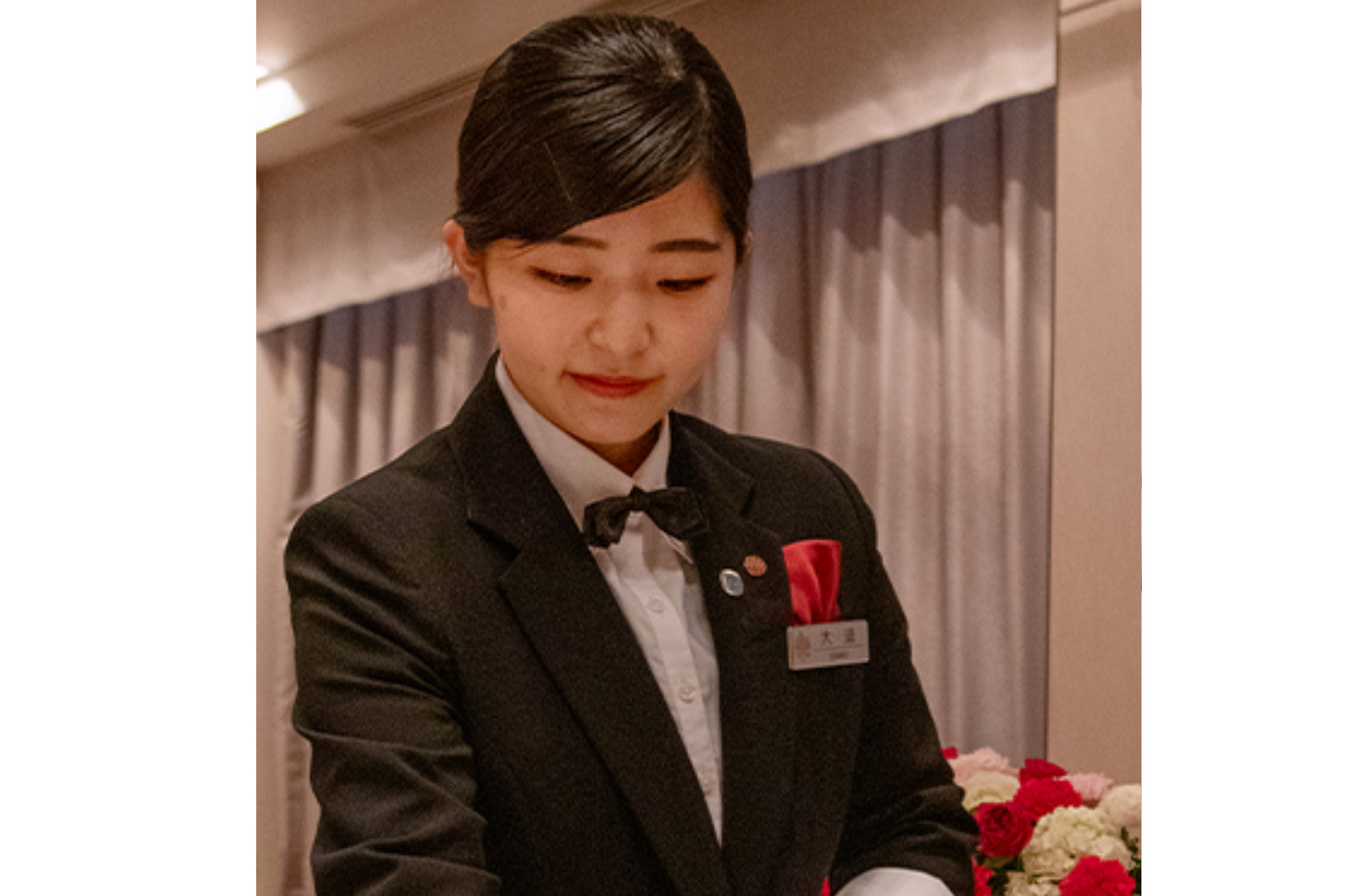 人と接することが好きな私は、以前当ホテルを利用した際、スタッフのサービス力に圧倒され、自分自身も歴史あるこのホテルで働き、お客様に満足していただけるようなサービスを提供できるホテルマンになりたいと強く思ったことがきっかけでした。