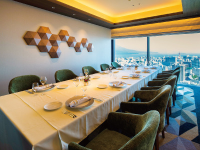 桜島を望む、3 面ガラス張りの開放的な空間で、鹿児島の海と大地の恵みをふんだんに 味わえるスペイン料理「薩摩エスパーニャ」をご提供いたします。