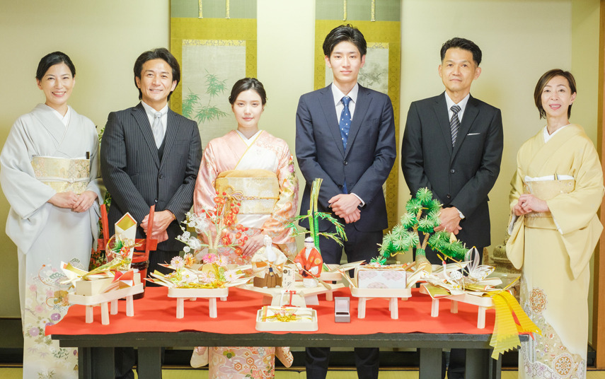 結納とは、両家が親類となって「結」びついたことを祝い、贈り物を「納」め合うこと。結納をした時点で「結婚をします」という約束を公に交わしたことになります。