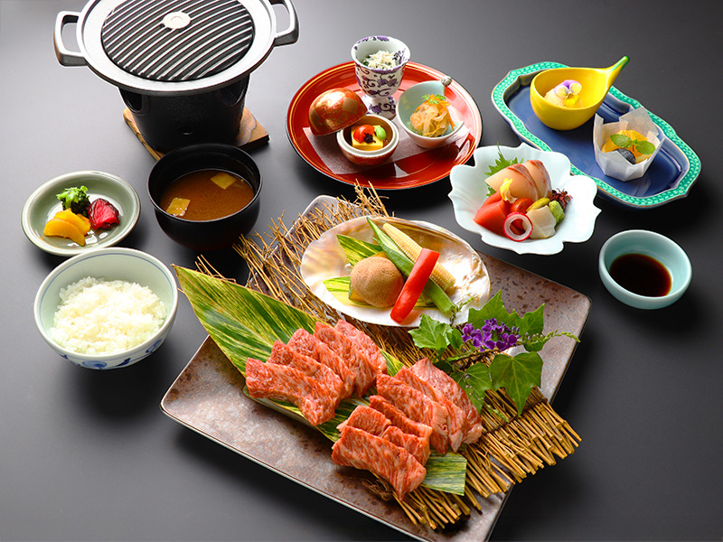 薩摩黒牛を陶板焼きで楽しむ御膳。