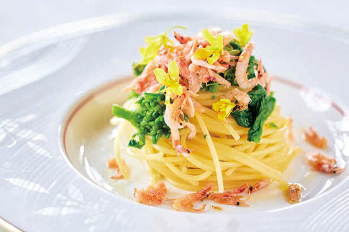 ②桜エビと指宿産菜の花のスパゲッティーニ