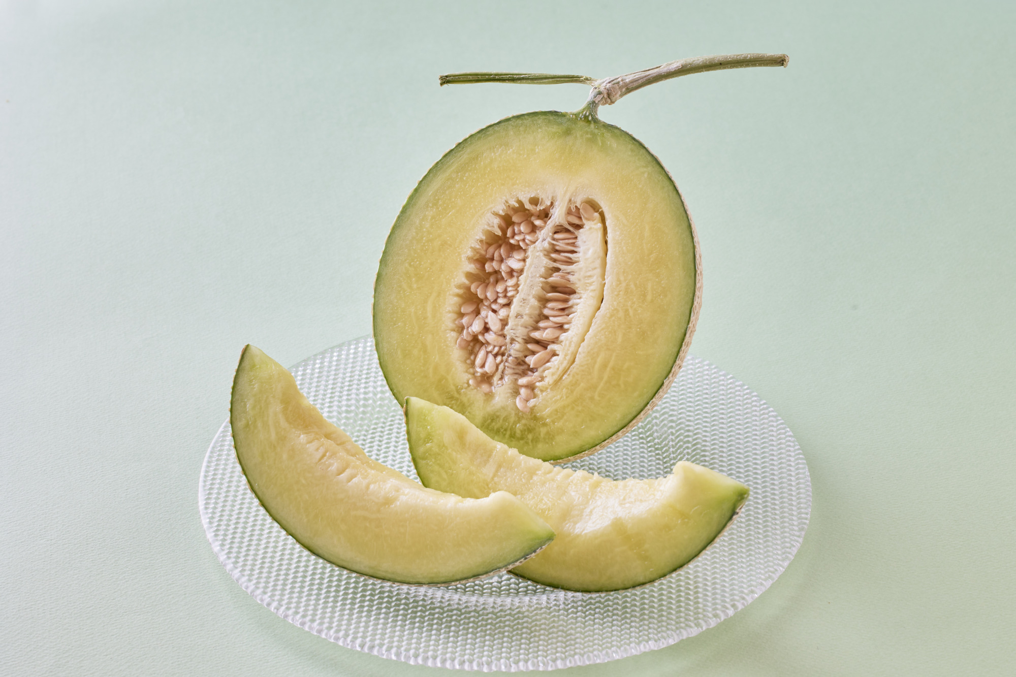 クラウンメロンが誇る芳醇な香りと濃厚な甘み、そして旬のフルーツの爽やかなみずみずしさを活かしたスイーツやセイボリーがテーブルを彩ります。