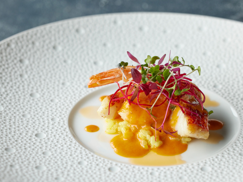 1. 鹿児島県産真鯛のポワレ 伊勢海老のソース