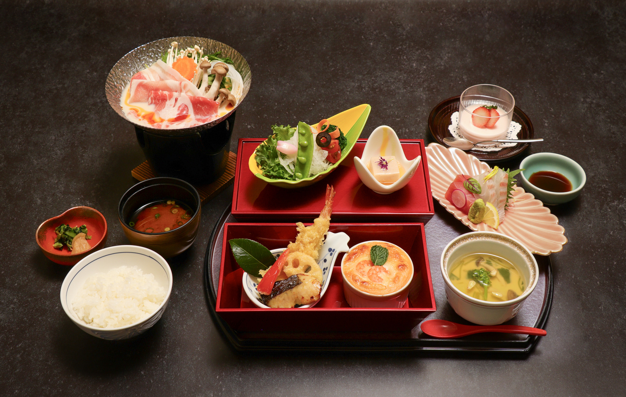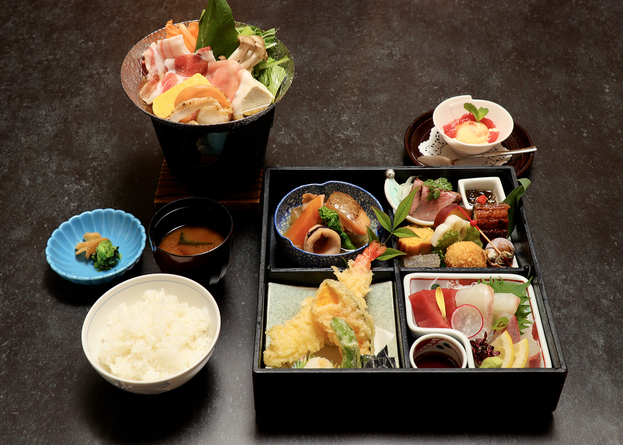 通年お楽しみいただける水簾自慢のランチメニューです。天麩羅、寿司、しゃぶしゃぶなどをお楽しみください。