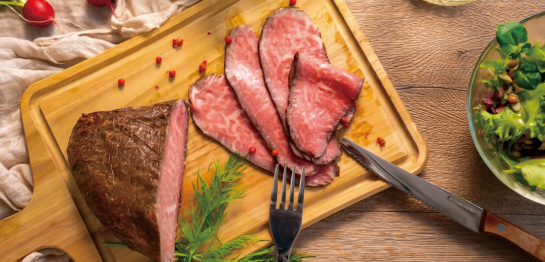 お肉の旨味、甘み、香りがぎゅっと凝縮されたローストビーフは余韻を残す美味しさが詰まっています。見た目も華やかなローストビーフは、大人数が集まるパーティーやおもてなしメニューにぴったり。