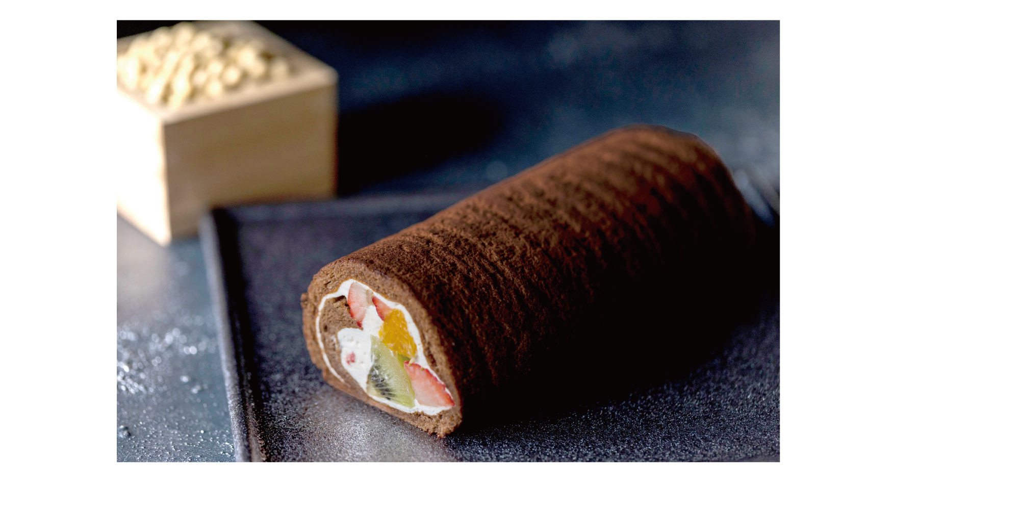 彩りよく合わせた数種のフルーツをショコラ 生地で巻き、甘い恵方巻に仕上げました。