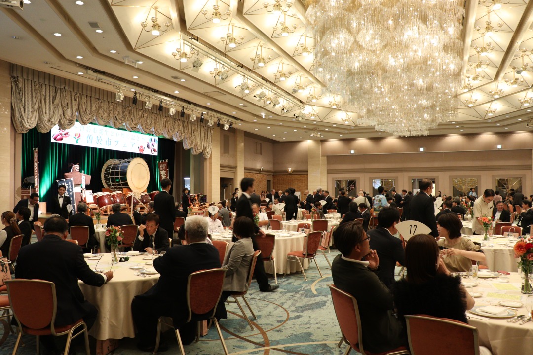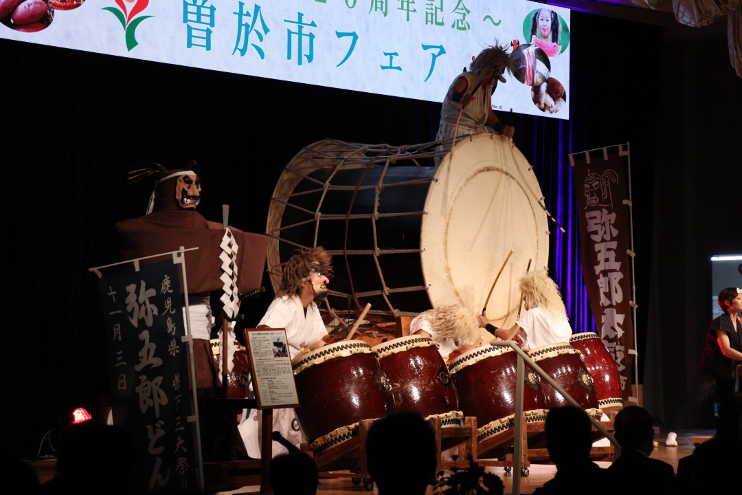 パーティーでは、伝統のある『弥五郎太鼓』、『鬼神太鼓』、『龍虎太鼓』の迫力ある演奏や抽選会で会場は大いに盛り上がり、曽於市誕生20周年を祝う華やかなひとときとなりました。