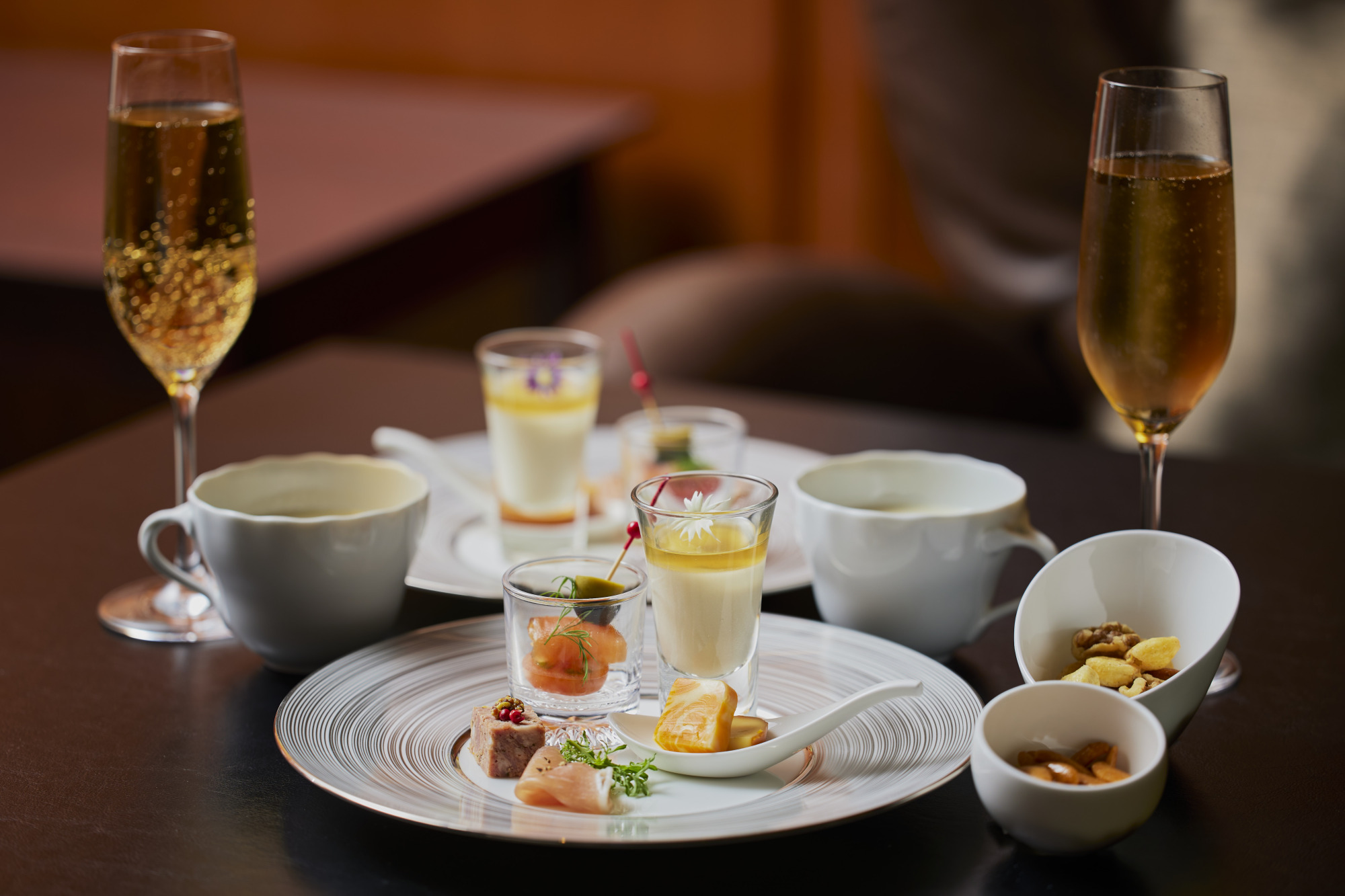 カクテルタイムではワインやカクテルなどのお飲み物とともに、イブニングライトミールをご用意しております。