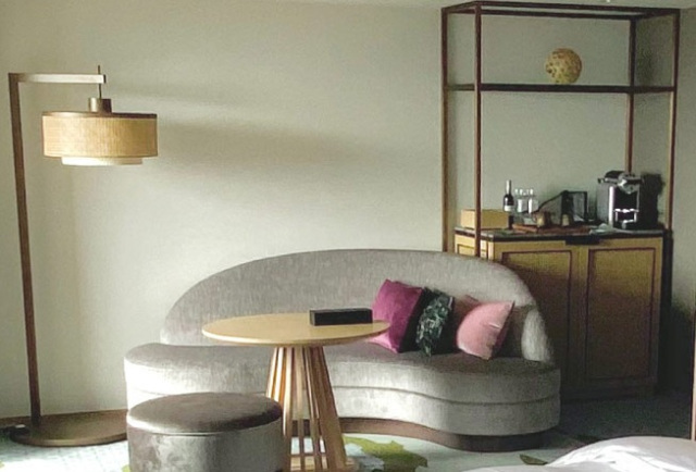 シーリー社製 ベッド / ウォークインクローゼット / ミニバー / コーヒーマシン / 薩摩焼 茶器セット / アイロン / ドライヤー / 体重計 / 55インチ4Kテレビ / 無料Wi-Fi / 加湿空気清浄機