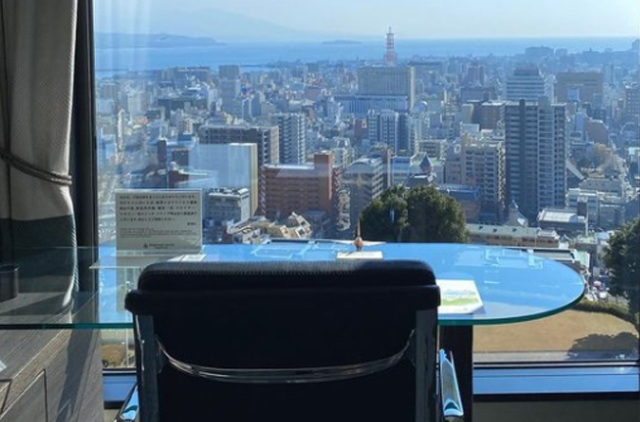 足元から天井まである大きな窓から桜島、錦江湾、鹿児島市街地が一望でき、開放感あふれる空間でくつろぎのひと時をお過ごしいただけます。ビジネスや長期滞在にもおすすめ。