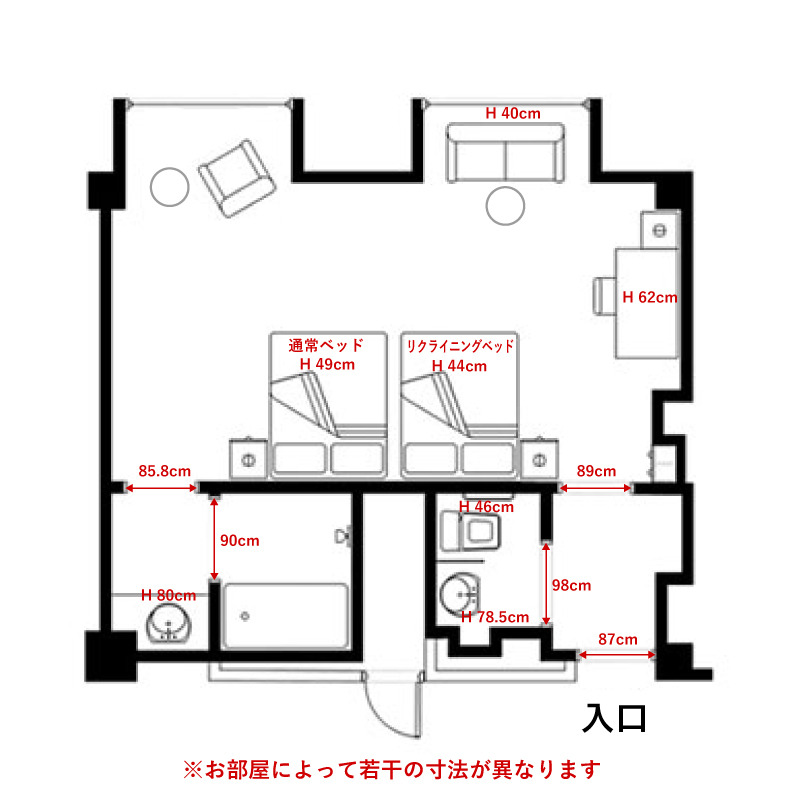 ※部屋タイプによって内装が異なります。 ※全部屋禁煙となっております。