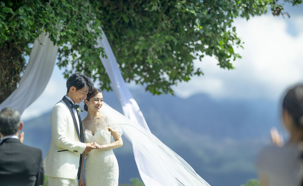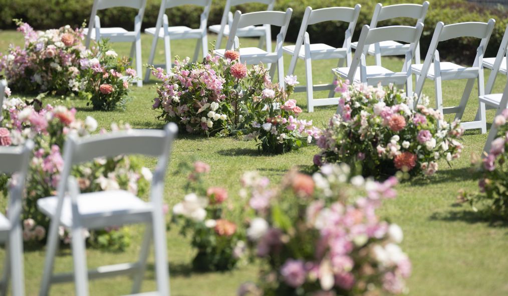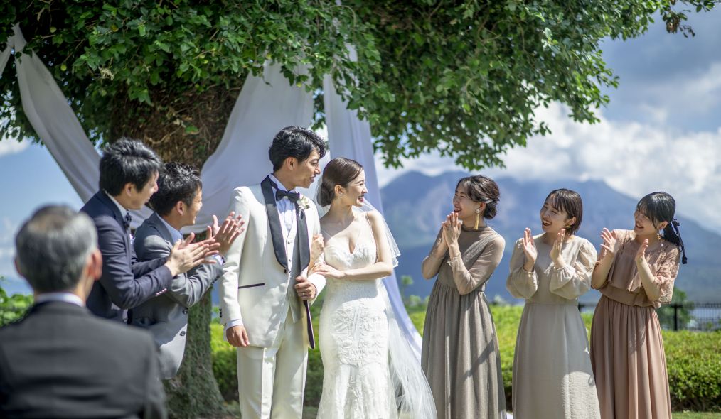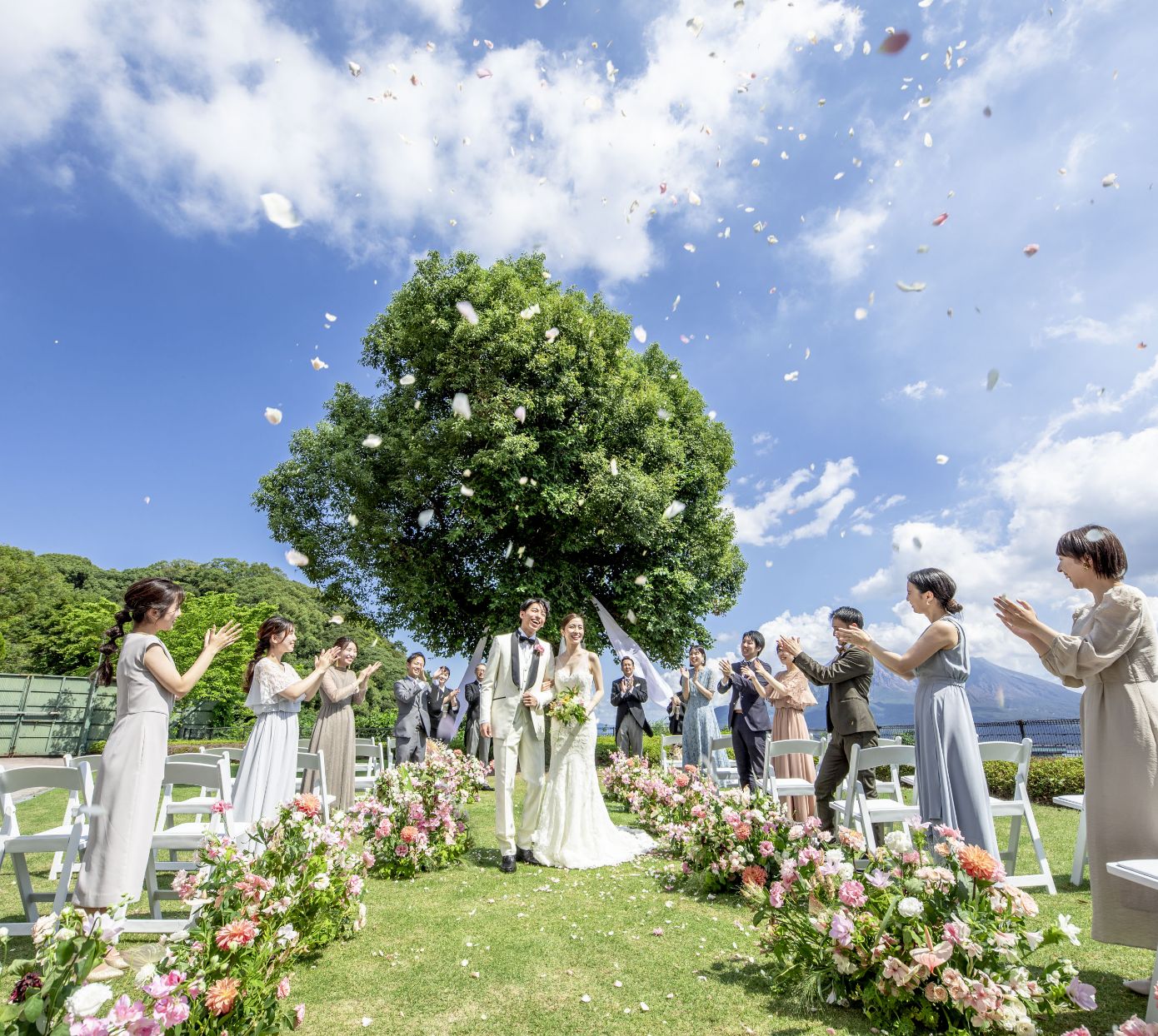 ガーデン挙式やセレモニーは、ゲストとの一体感を演出。